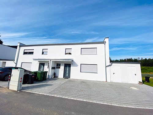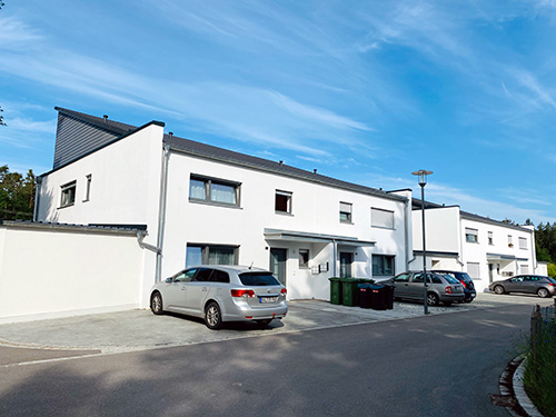 Ein modernes Design trifft auf energieeffieziente Technik sowohl innen wie auch außen. Luftwasserwärmepumpe zur sparsamen Beheizung mittels Niedrigtemperaturtechnik kombiniert mit besten Dämmmaterialien begründen den niedrigen Energieverbrauch der Häuser.