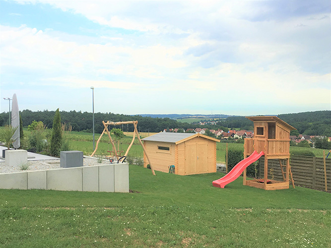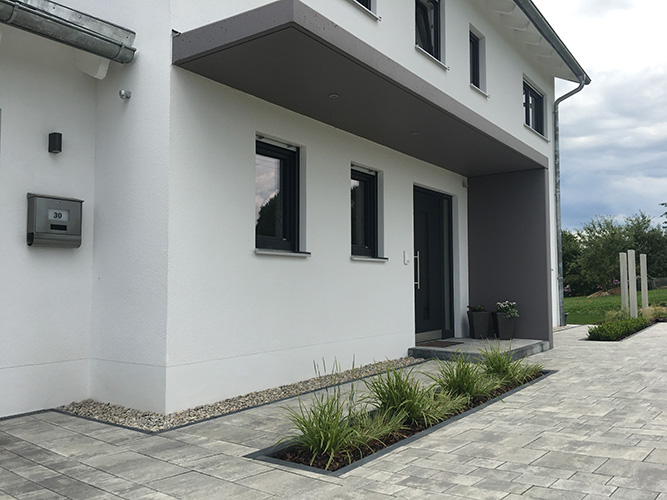 Mit raffinierten Details bei der Bauweise und in Zusammenspiel mit Material- und Farbauswahl entstand sowohl ein optischer Hingucker als auch ein Eigenheim, welches zum Wohlfühlen einlädt. Die traumhaft angelegten Außenanlagen und der liebevoll bepflanzte Garten runden diesen Neubau perfekt ab und bietet viel Platz für Kinder zum Toben und gemütliche Sommerabende auf der Terrasse.